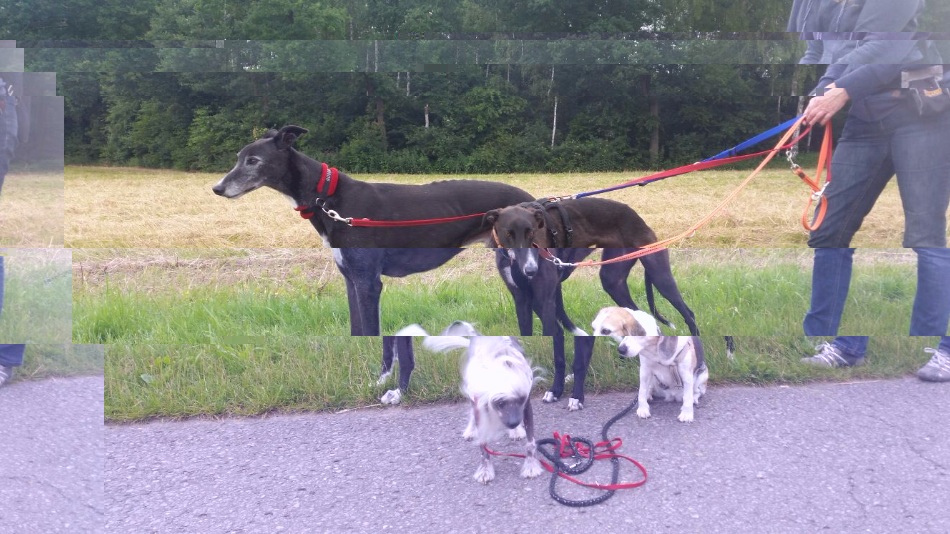An der Leine gehen muss noch geübt werden, das findet sie komisch und dann will sie nicht so recht mitlaufen. In ihrem Rudel auf der Pflegestelle bewegt sie sich sicher.