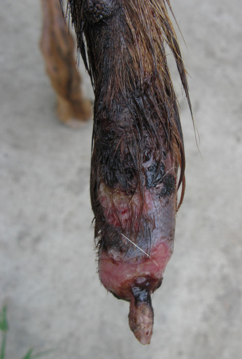 Hier ist die abgestorbene Schwanzspitze...