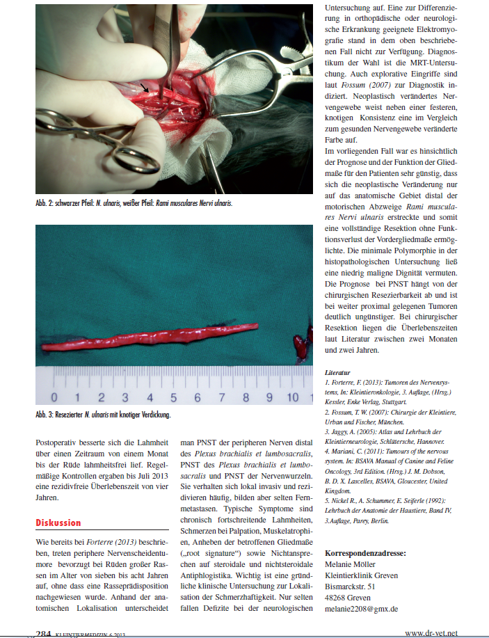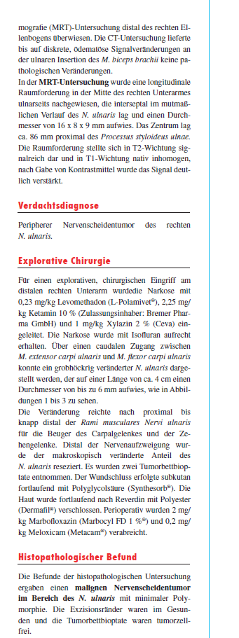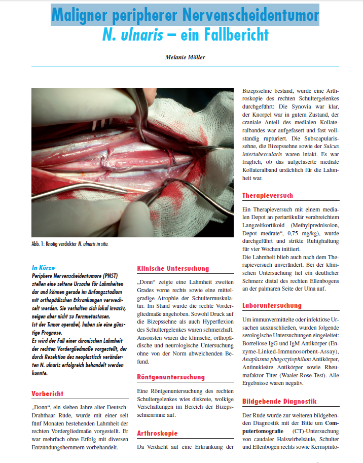 Ich weiß jetzt nicht, wie häufig dies bei Hunden/Windhunden (Greyhounds/Ex-Racer) vorkommt, denke aber, es schadet nicht, dies bei andauernder Lahmheit mal im Hinterkopf zu behalten.„Donn“, ein sieben Jahre alter Deutsch-Drahthaar Rüde, wurde mit einer seit fünf Monaten bestehenden Lahmheit der rechten Vordergliedmaße vorgestellt. Er