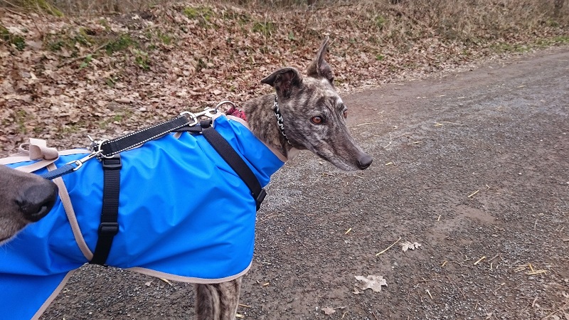 Die kleine Dame läuft völlig entspannt an der Leine und scheint nur einen mäßig ausgebildeten Jagdtrieb zu haben.